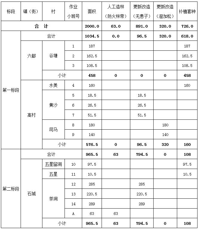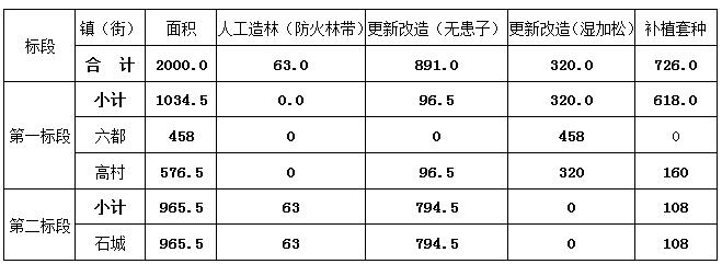 (二)、采購文件第二章 用戶需求書P7中“四、云安區(qū)2020年森林碳匯重點(diǎn)生態(tài)工程項目要求--(四)建設(shè)工程量”